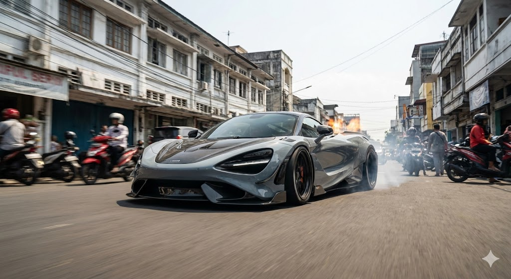 McLaren 765LT sangat cocok untuk gaya racing urban modern. Dimensi agresif, performa brutal, dan desain futuristik membuatnya mencuri perhatian di jalanan kota.