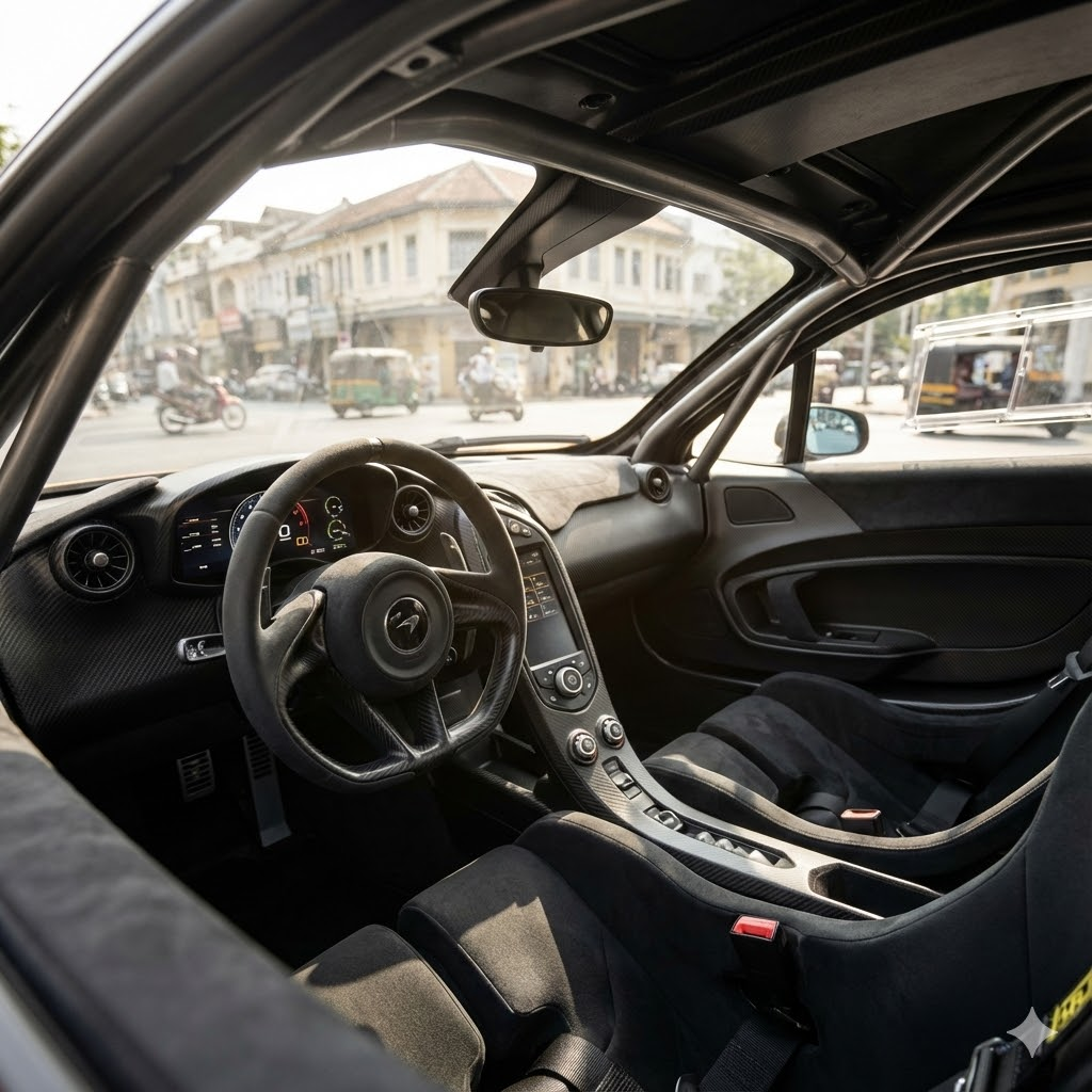Masuk ke dalam kabin McLaren P1, kesan pertama yang terasa adalah kesederhanaan ekstrem. Interiornya tidak dipenuhi tombol berlebihan. Setiap kontrol ditempatkan untuk kemudahan pengemudi, bukan untuk pamer teknologi.